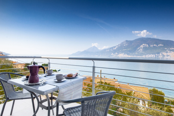 Schönes und komfortables Ferien-Appartement mit Panorama-Terrasse und Seeblick in Brenzone Sul Garda. Sehr gute Einrichtung und Ausstattung, SAT-TV, Internet, Klima-Anlage, Parkplatz auf dem eingez. Grundstück.