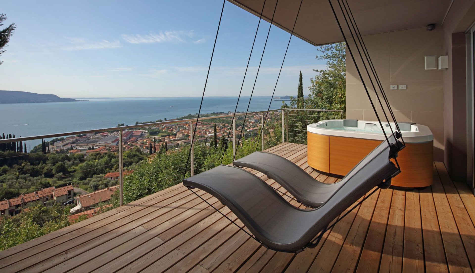 Sehr schöne und komfortable Ferienwohnung für 4 Personen mit Whirlpool und Panorama-Terrasse (Seeblick) bei Torri del Benaco.Top-Einrichtung und Ausstattung, Klima-Anlage-SAT-TV, Internet, Kinderfreundlich, eingez. Grundstück, Parkplatz