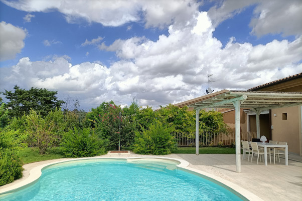 Schönes und komfortables Landhaus für 8 Personen mit Privatpool in unmittelbarer Nähe eines Golf-Resorts. Gute Einrichtung und Ausstattung. Klima-Anlage, Smart-TV, Internet, Tischtennis, PAvillion am Pool, Parkplätze, Grill