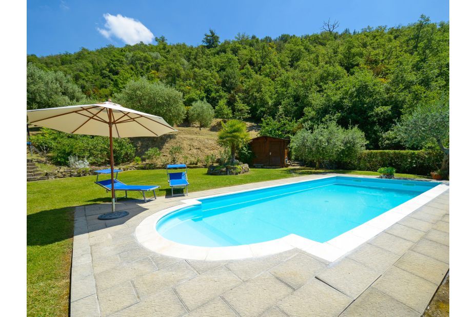 Die Villa Il Farinaio liegt in einer wunderschönen und ruhigen Hügel-Lage mit Blick auf das Tal zwischen Cortona und dem Lago Trasimeno, nahe der Grenze zu Umbrien.