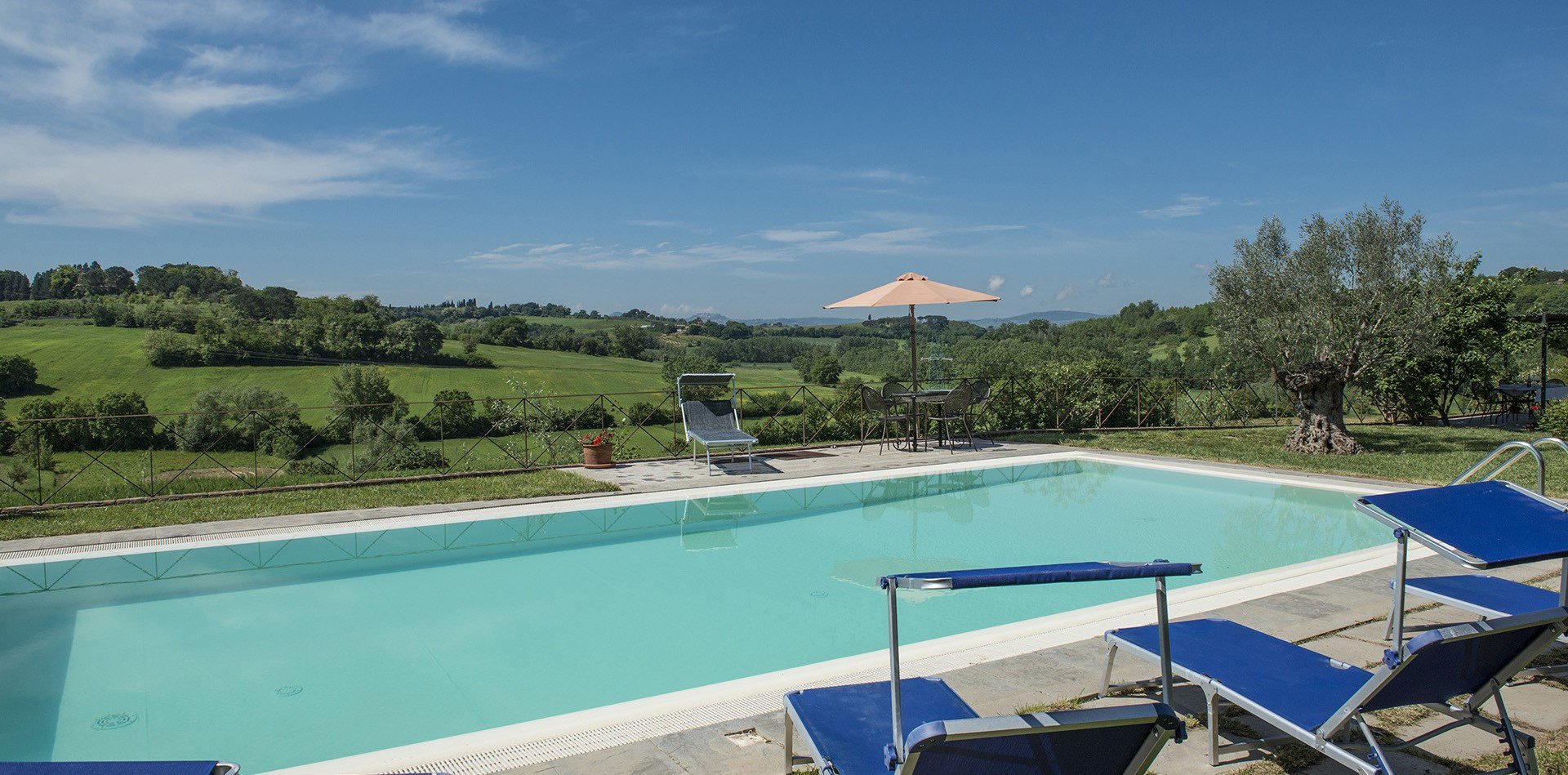 Das große und gepflegte Anwesen liegt in der herrlichen Toskana-Landschaft bei Cortona und nahe der Grenze zu Umbrien und dem Lago di Trasimeno und wird wahlweise für 6 oder 8 Gäste vermietet.