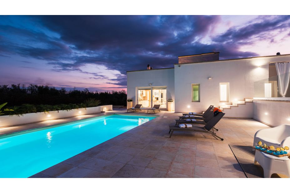 Die VILLA DIMORA SOLARIS ist eine moderne Ferienvilla und liegt in der Landschaft vor den Toren von Ugento, nur eine kurze Fahrt von den weißen Sandstränden von Torre San Giovanni.