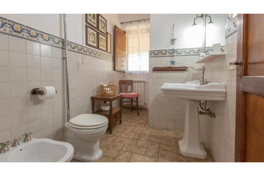 Die angrenzende Küche ist typisch sizilianisches Mauerwerk mit, auf der Seite, eine Speisekammer mit Geschirrspüler.
