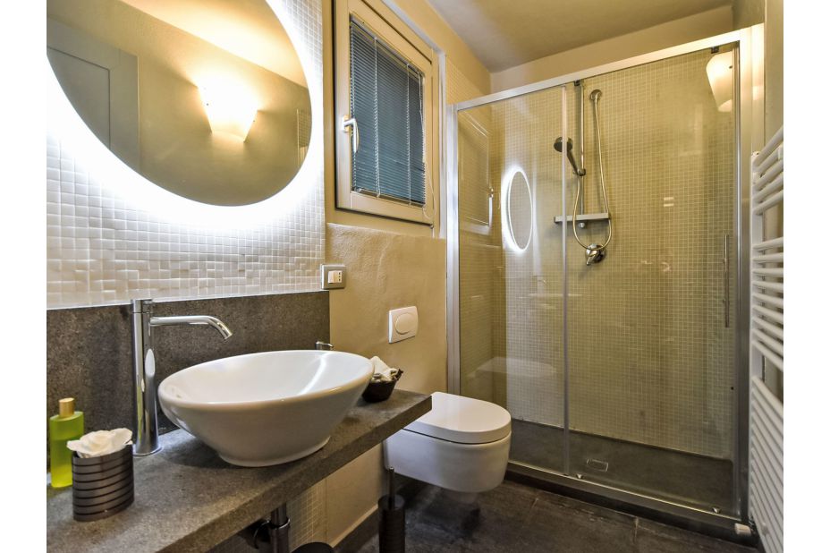 Kochnische (5 Kochplatten, Mini-Backofen, Backofen, Geschirrspüler, Toaster, Wasserkocher, elektrische Kaffeemaschine, Kapseln für die Kaffeemaschine (Nespresso) gratis). Dusche/WC.