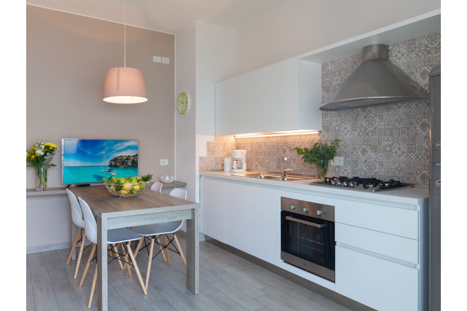 "Ora", 2-Zimmer-Wohnung im Erdgeschoss. Objekt geeignet für 2 Erwachsene. Renoviert im Jahre 2017, schön und modern eingerichtet: Wohn-/Esszimmer mit Esstisch, TV und Klimaanlage. Ausgang zum Balkon. 1 Doppelzimmer mit Klimaanlage. Offene Küche (Backofen, 4 Induktionskochplatten, Toaster, Wasserkocher, Tiefkühler, elektrische Kaffeemaschine). Dusche/Bidet/WC. Fussbodenheizung. Balkon, Westlage. Balkonmöbel.