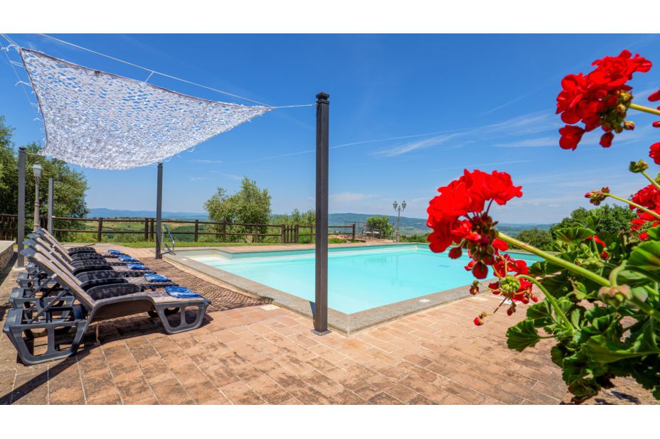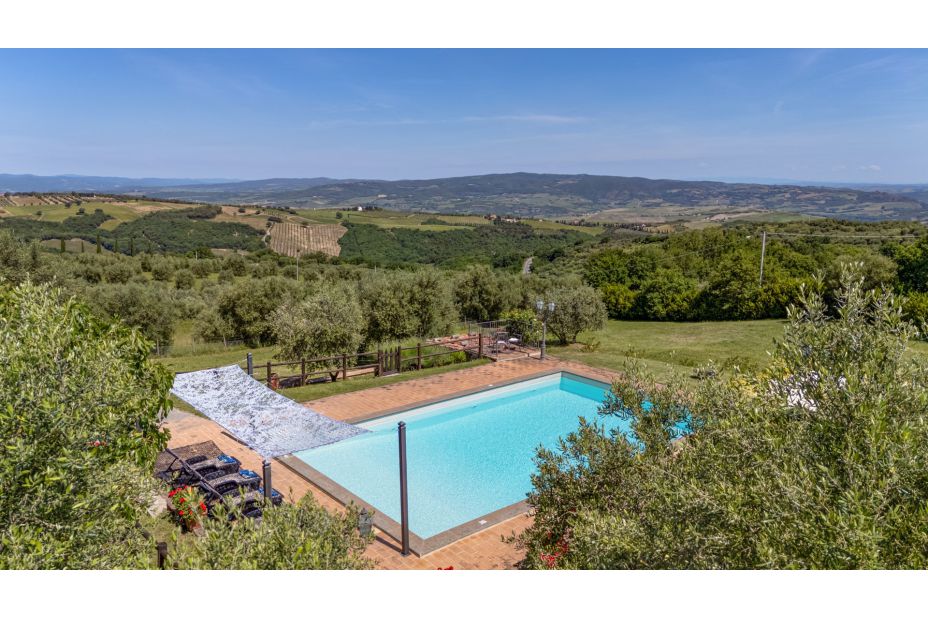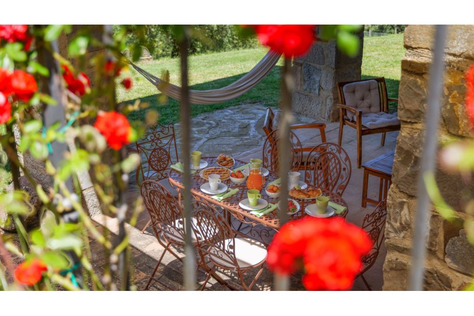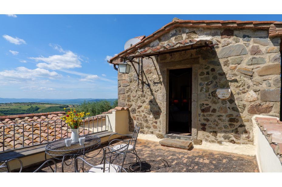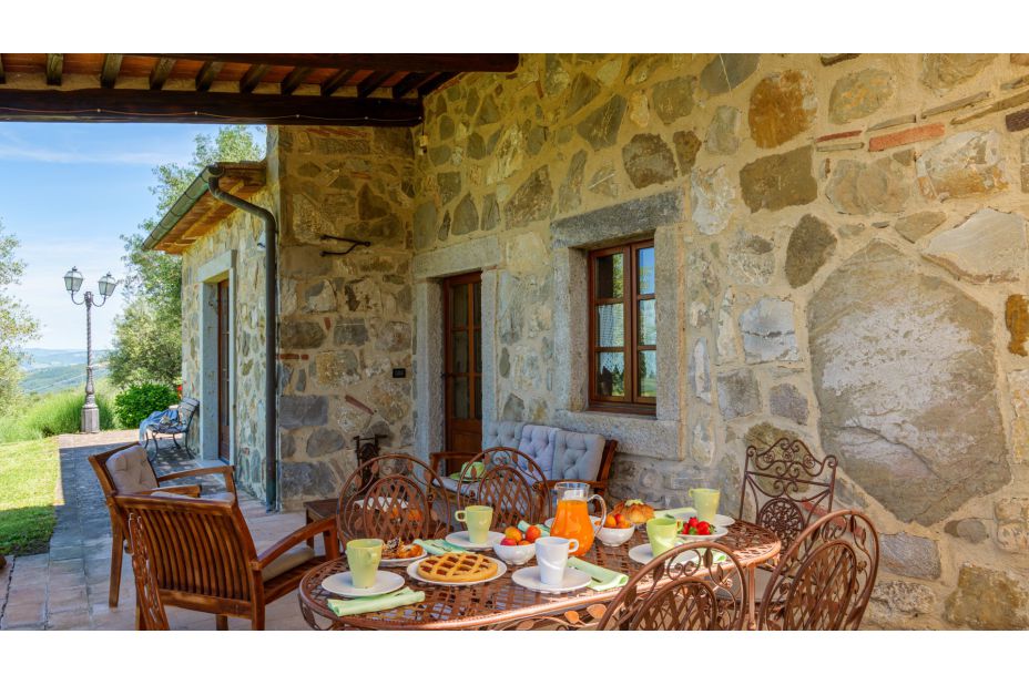 Beim Haus gibt es einen überdachten Sitzplatz mit traumhaftem Panorama-Blick in die toskanische Landschaft.