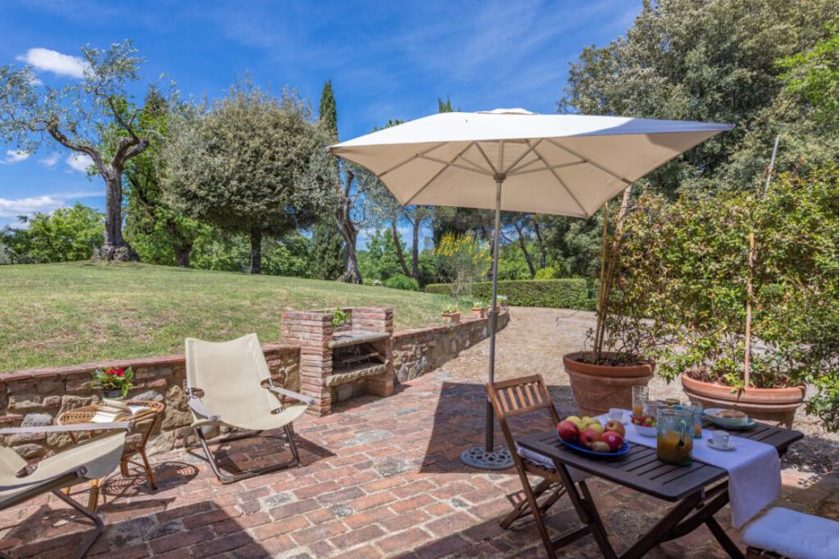 Von Wohnzimmer erreicht man den italienischen Garten, umgeben von Olivenbäumen und Zypressen.