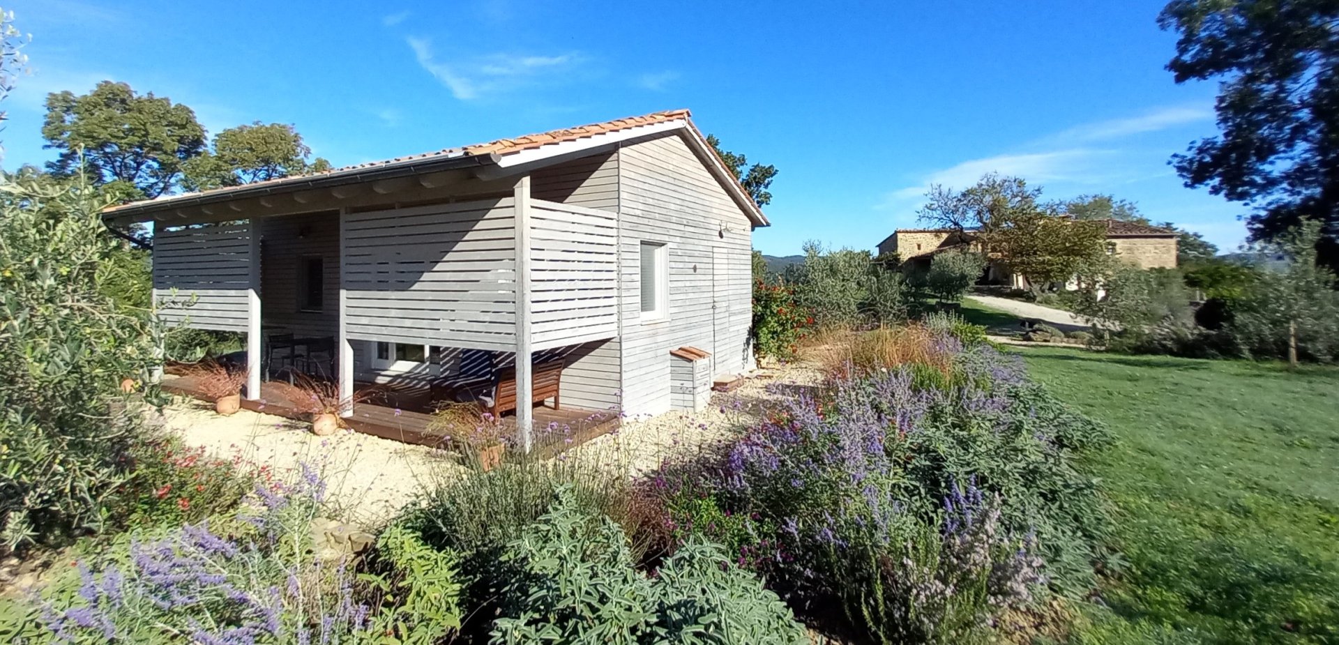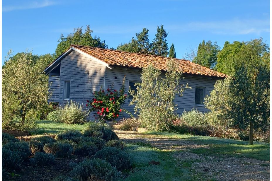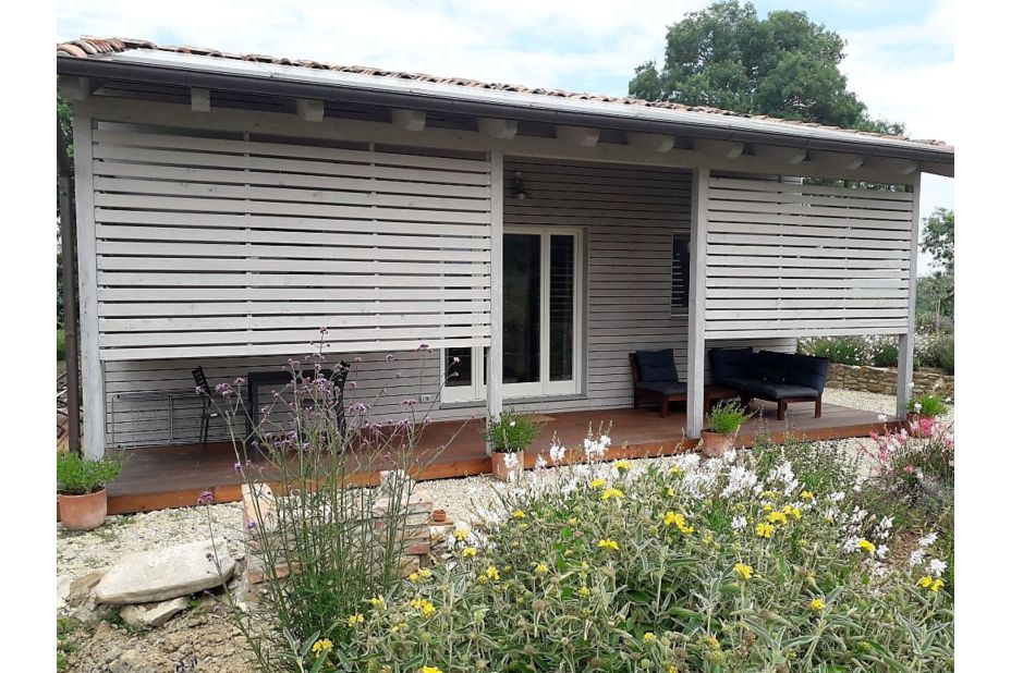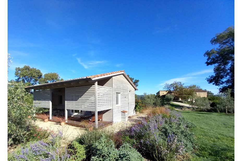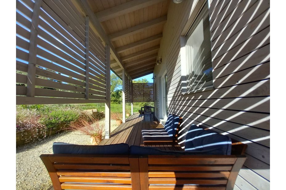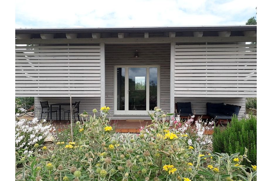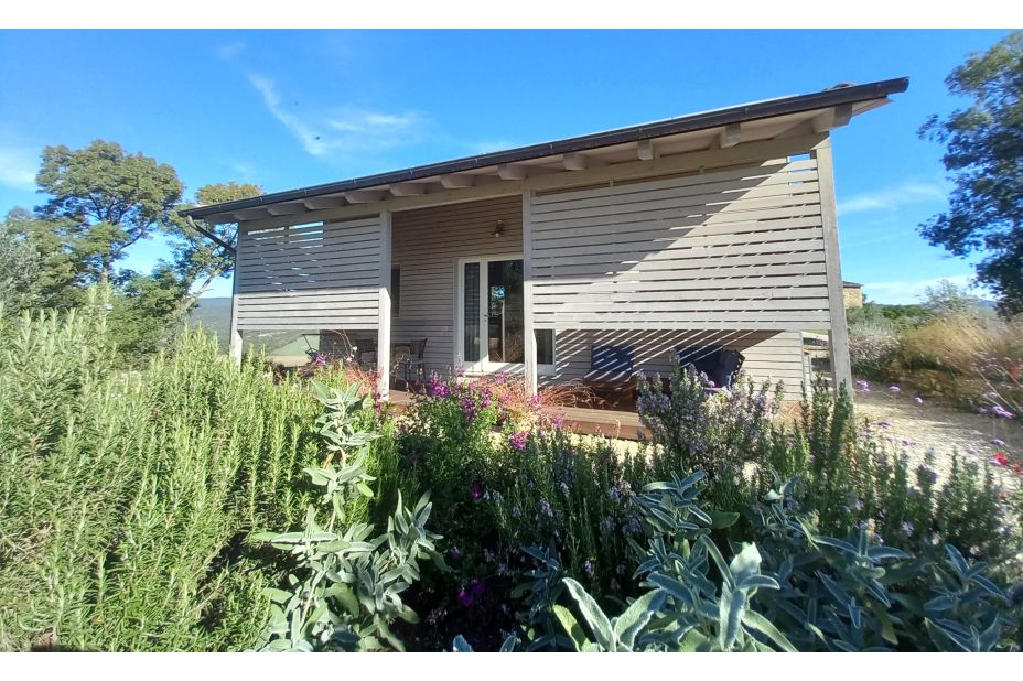Das Ökohaus wurde 2019 aus 100 % nachhaltigen Materialien erbaut. Es ist vom Haupthaus unabhängig und verfügt über eine große private Terrasse mit Sitz- und Essbereich im Freien.
