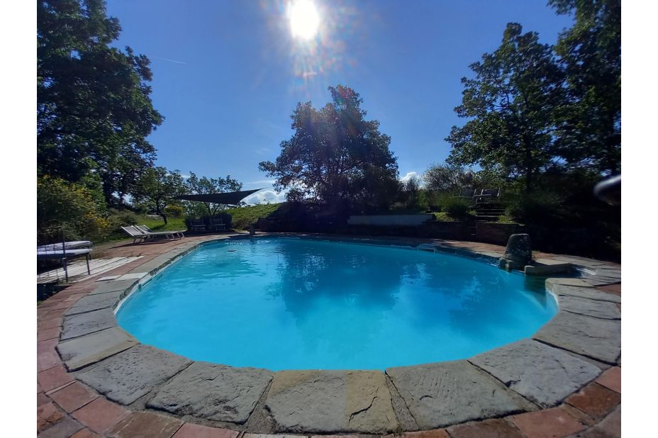 In ca. 90 m Entfernung vom Ferienhaus befindet sich ein sehr schöner Swimming-Pool zur gemeinsamen Nutzung mit weiteren Gäste von zwei kleinen Appartements im Bauernhaus (max. 6 Peronen)zur Verfügung