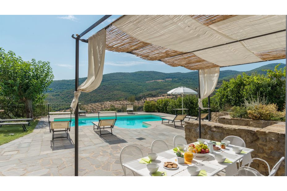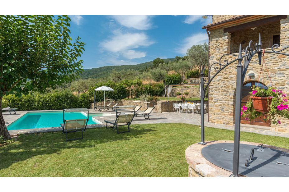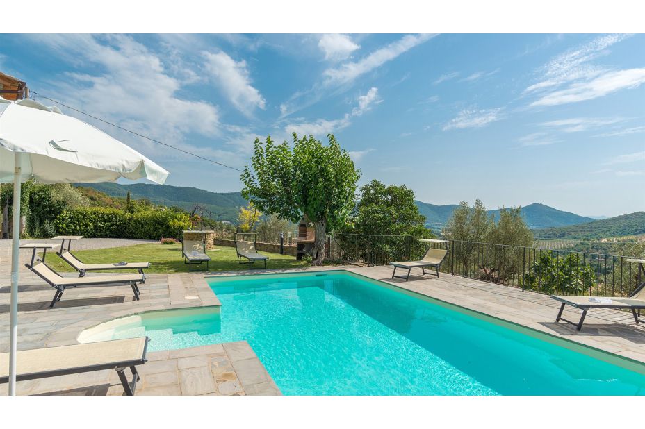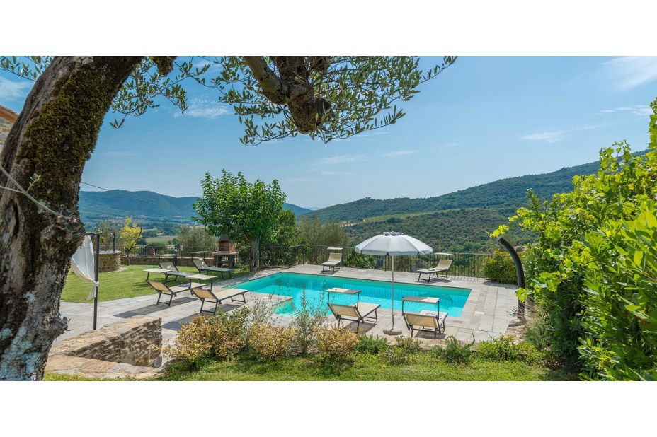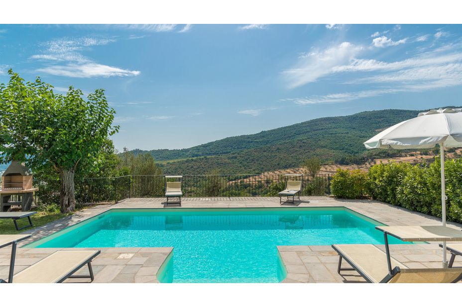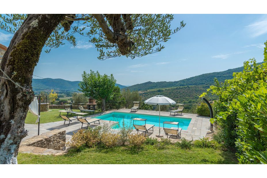Direkt vor dem Haus, auf einer schönen Terrasse mit Blick auf die Hügel von Cortona, liegt der Swimmingpool, der ausschließlich den Gästen des Hauses vorehalten ist.