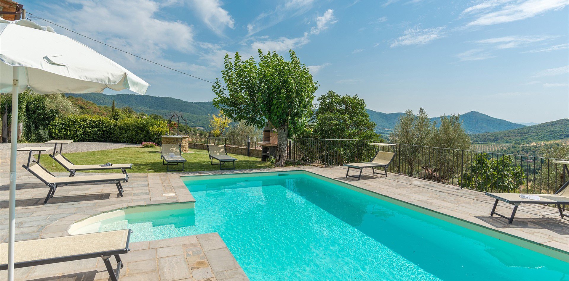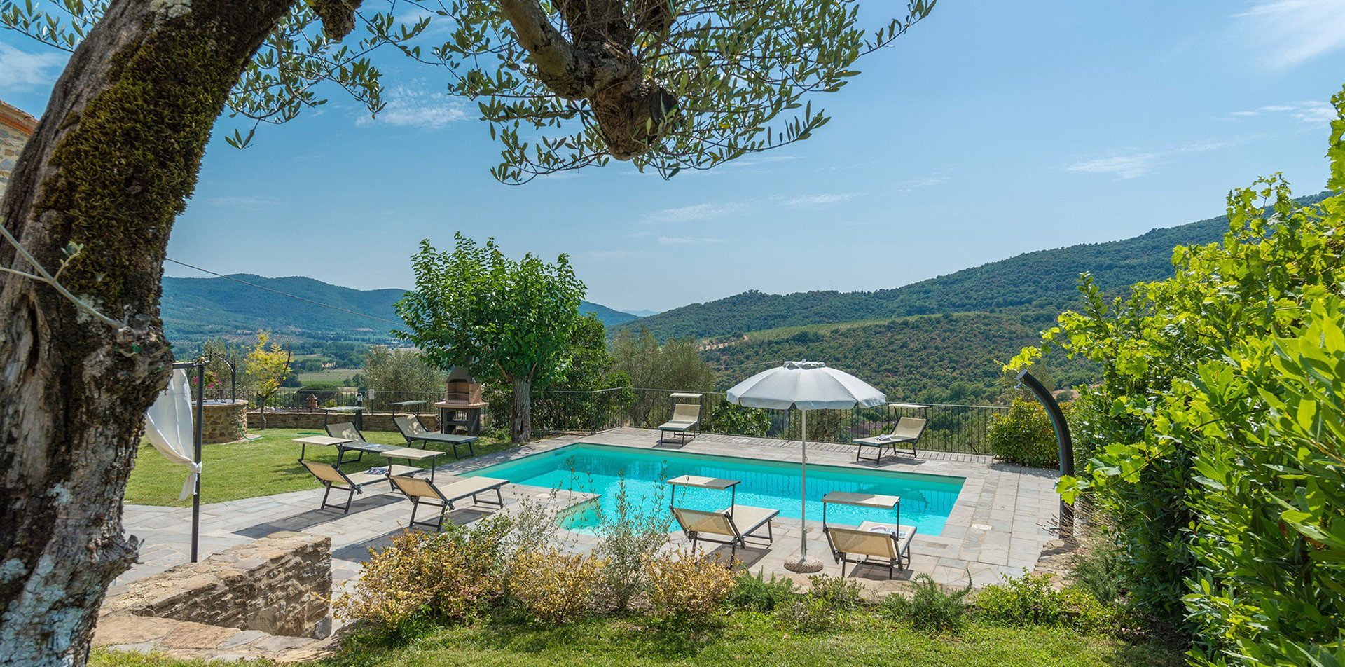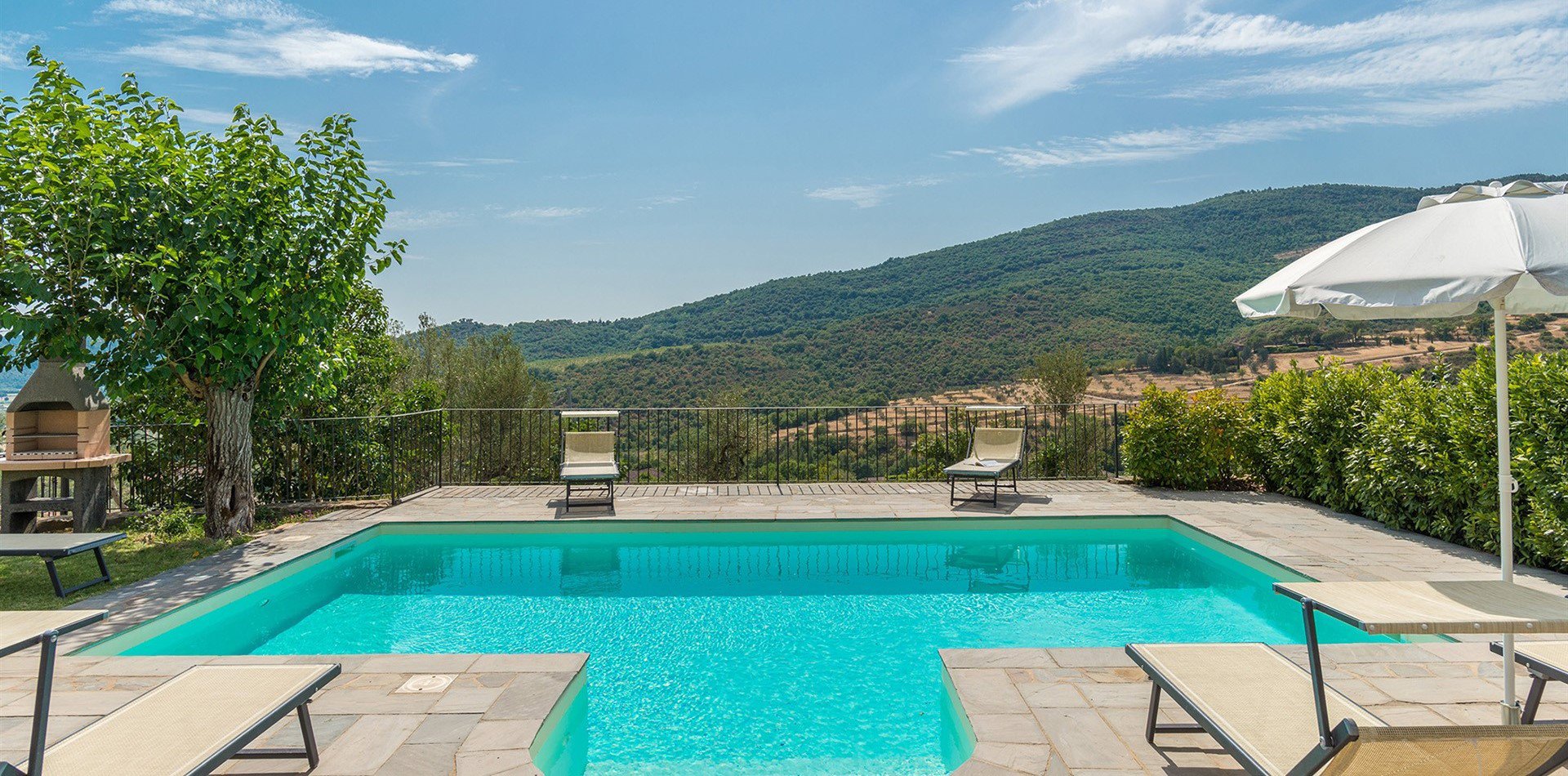 Direkt vor dem Haus, auf einer schönen Terrasse mit Blick auf die Hügel von Cortona, liegt der Swimmingpool, der ausschließlich den Gästen des Hauses vorehalten ist.