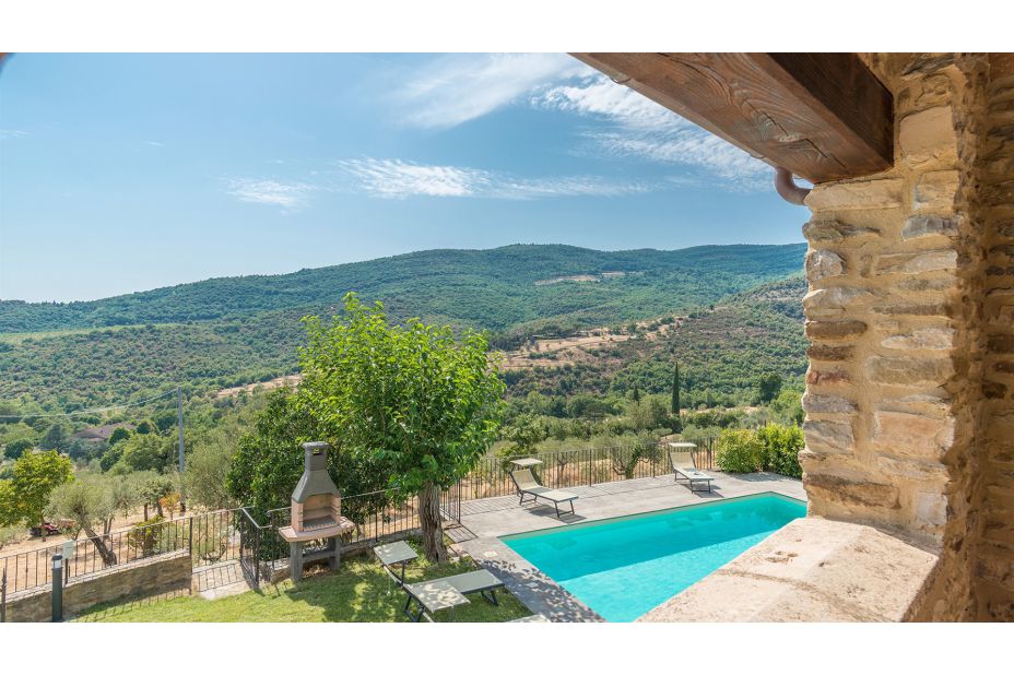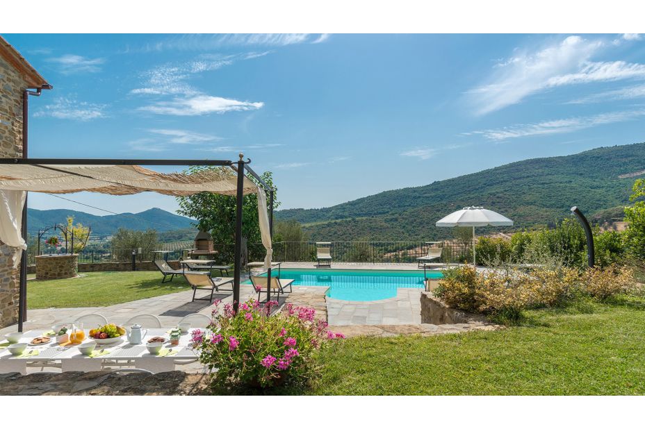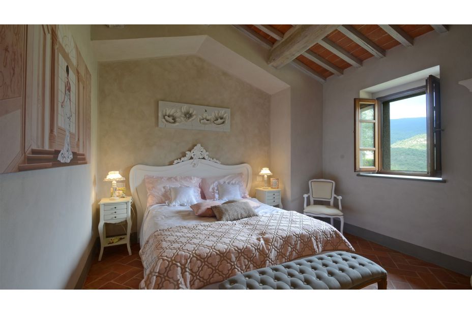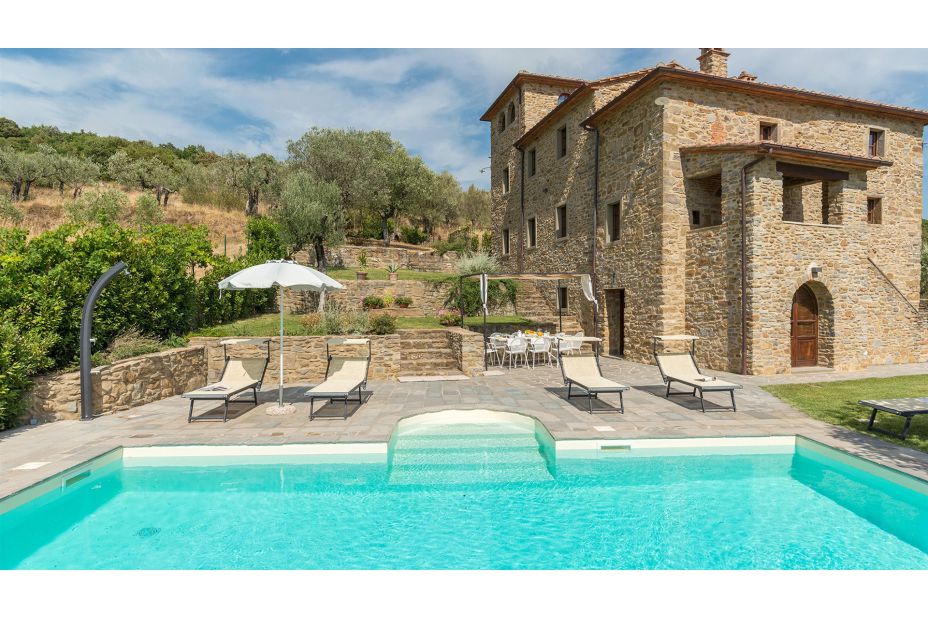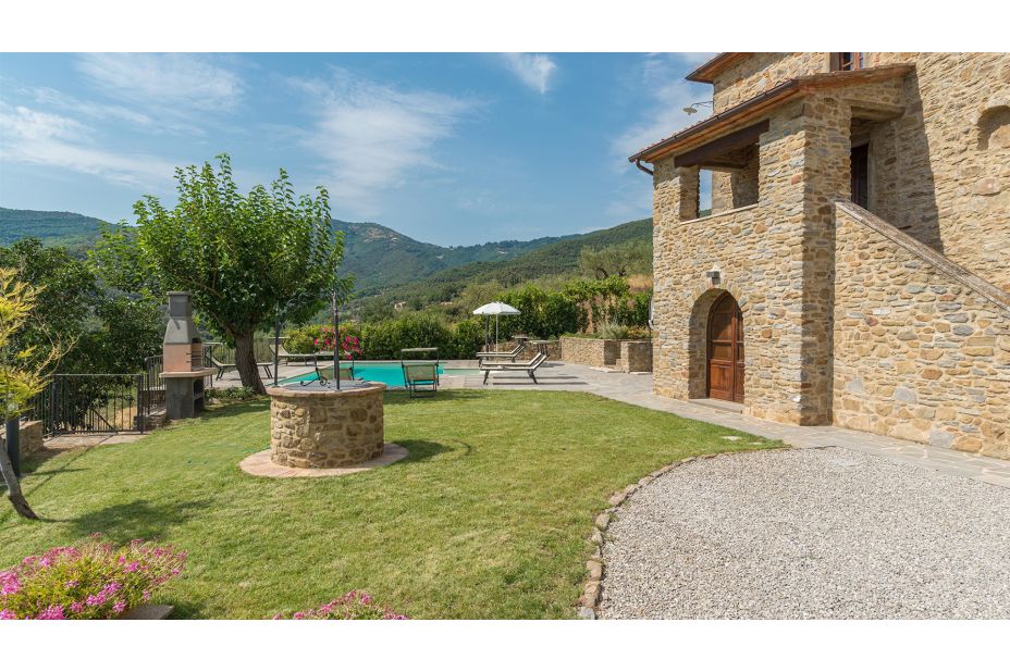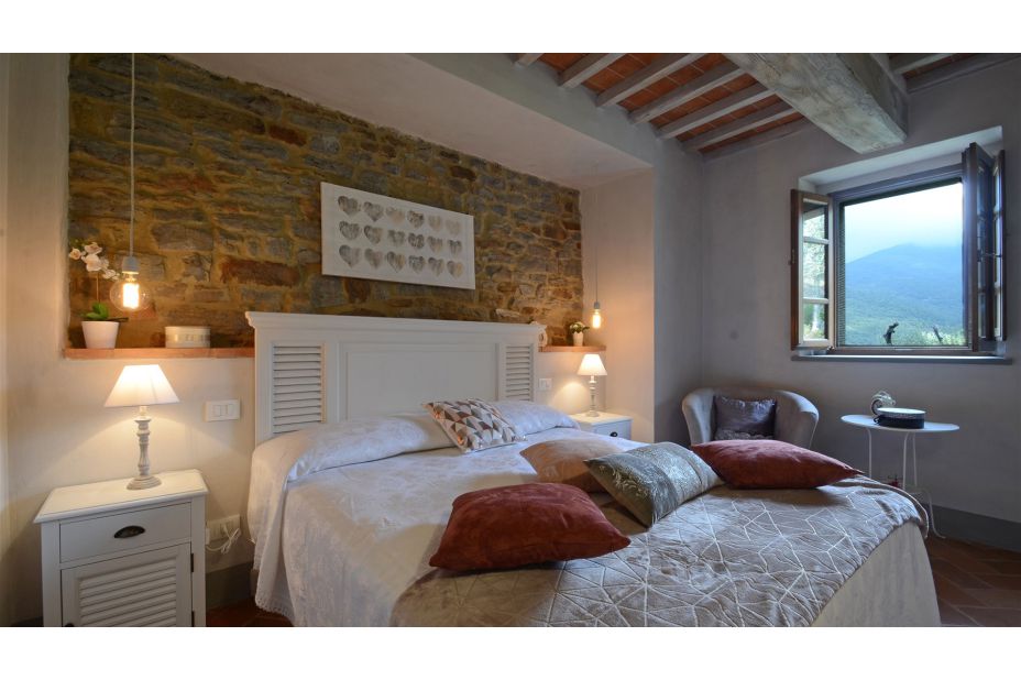 Das herrschaftliche Natursteinhaus liegt in einer reizvollen Hügel-Landschaft nur 10 km von Cortona und bietet seinen Gästen einen traumhaften Blick auf die Umgebung.