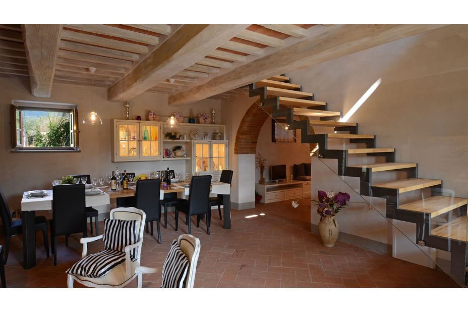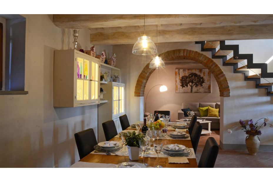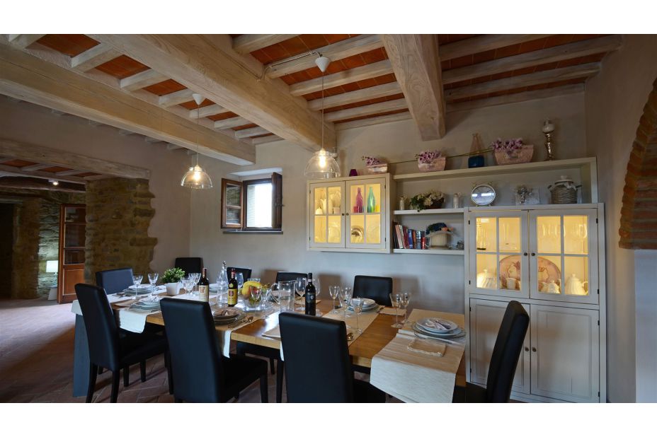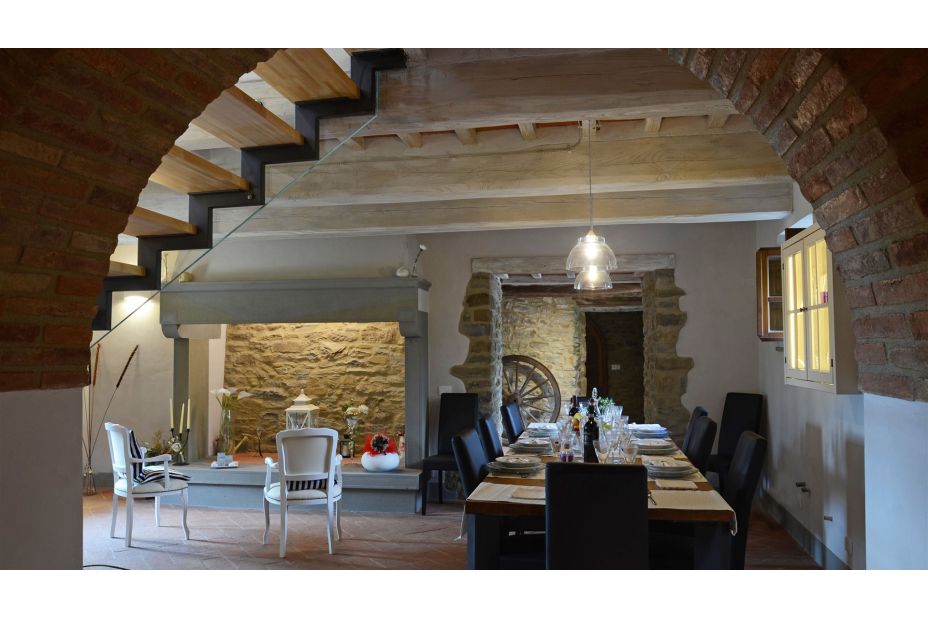 Der Charme dieses original toskanischen Bauernhauses lebt in der herrlichen Restaurierung weiter, die dem Äußeren in exponiertem Cortona-Stein und innen neues Licht gegeben hat: Tradition trifft Moderne!