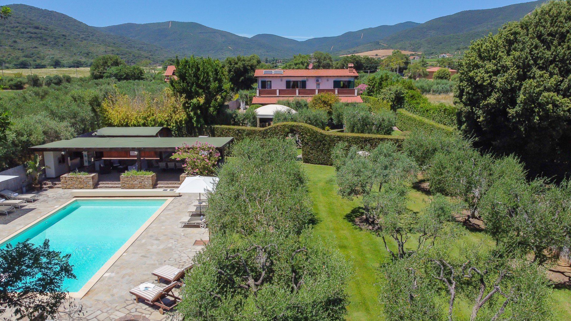 Das eingezäunte Anwesen liegt nur 4 km von Castiglione della Pescaia und der toskanischen Küste entfernt, umgeben von Olivenbäumen und Rasenflächen.