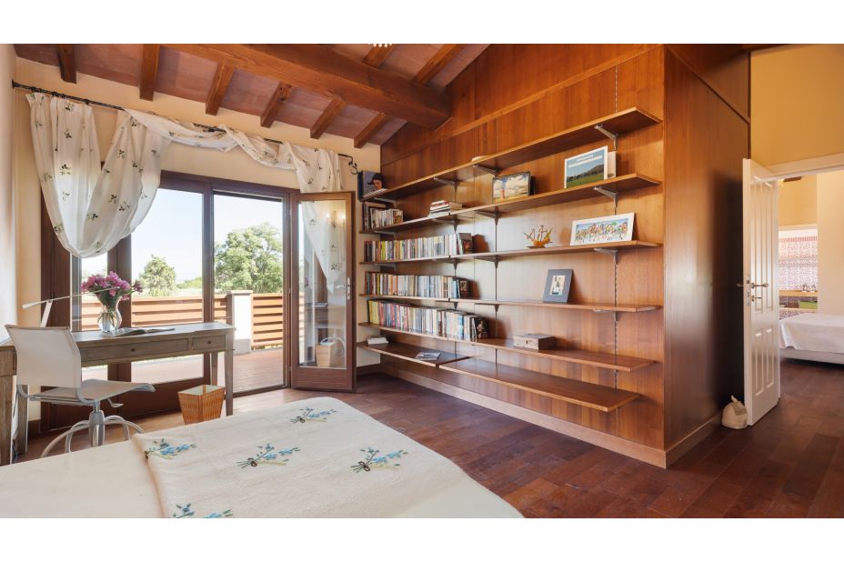 Obergeschoss: Studo; Doppelzimmer mit Ankleideraum, eigenem Bad mit Wanne und Dusche und Zugang zur Terrasse; Einzelzimmer mit Kingsize-Bett, ebenfalls mit Zugang zur Terrasse, verbunden mit dem Arbeitszimmer und Doppelzimmer. Untergeschoss: Sitzbereich; Wellnessbereich mit finnischer Sauna, Reaktionswanne, Farbtherapie, Laufband, Dusche und Gästebad; Waschküche mit Zugang zum Garten über eine Außentreppe.
