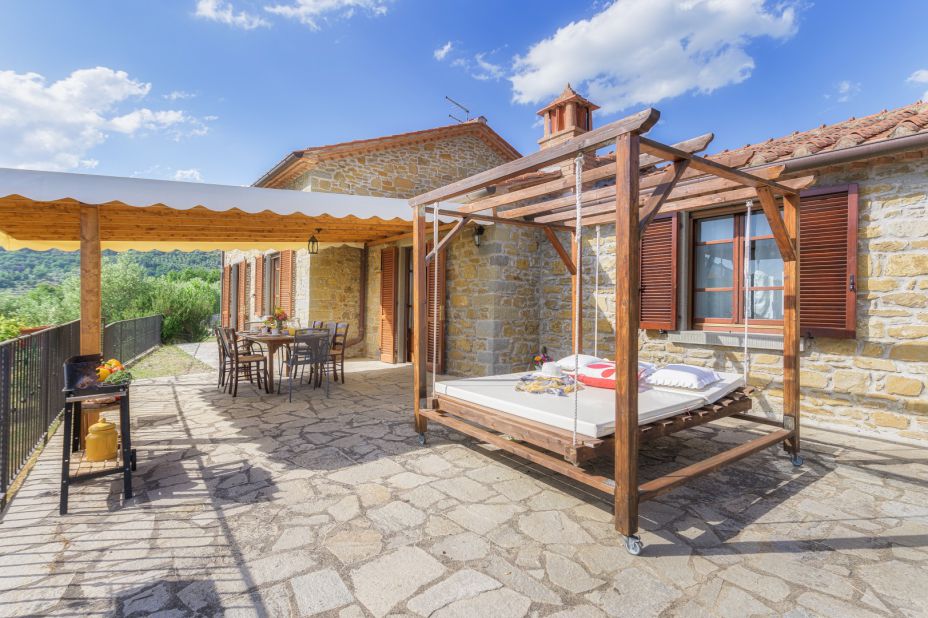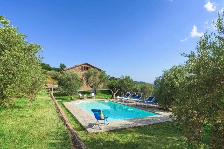 Das ehemalige Bauernhaus, komplett aus lokalen Natursteinen erbaut, fügt sich wunderbar in die toskanische Landschaft dieser