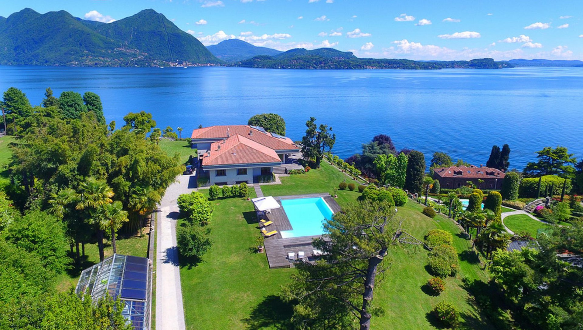 Die VILLA FIORELLA liegt in einem großen Privatpark (8000 m²) mit einem schönen gepflegten Rasen, schattenspendenden Bäumen, blühenden Pflanzen und Blumen und bietet ein atemberaubendes Panorama auf den Lago Maggiore und Umgebung.