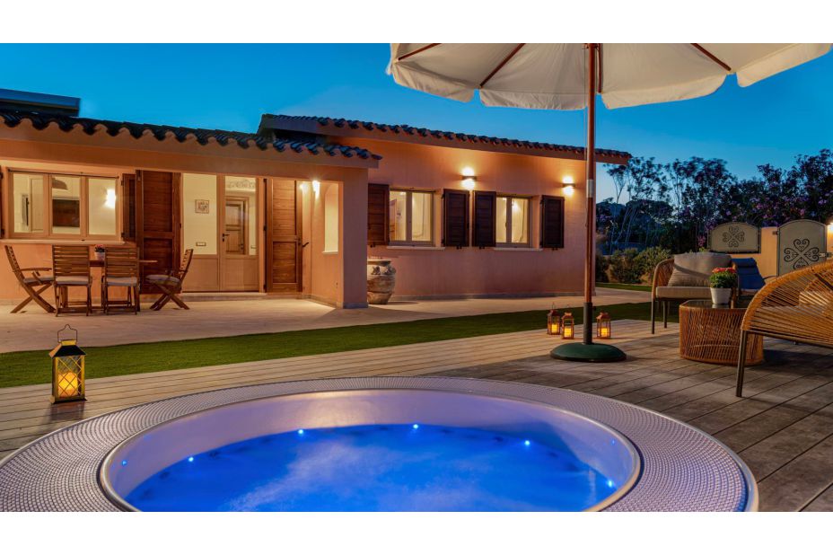 Porticato mit Essplatz, Parkplatz und einen beheizbaren Whirlpool.