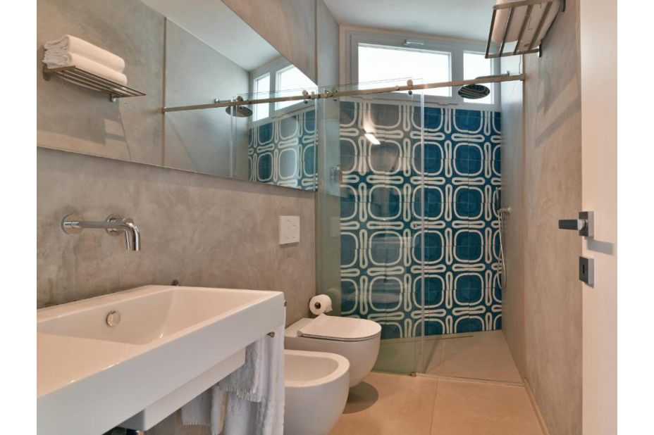 Schlafbereich: Doppelzimmer mit eigenem Bad mit Dusche; zweites Schlafzimmer mit Doppelbett, das von einem Badezimmer mit Dusche serviert wird.