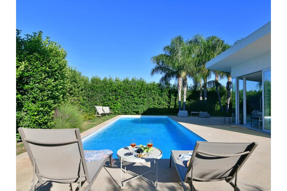 Die VILLA MANDORLO ist eine von insgesamt 7 modernen, jedoch jeweils unabhängigen Ferienvillen und befindet sich im malerischen Val di Noto, im Südosten Siziliens, in einer Residenz nur 400 m vom Meer entfernt.