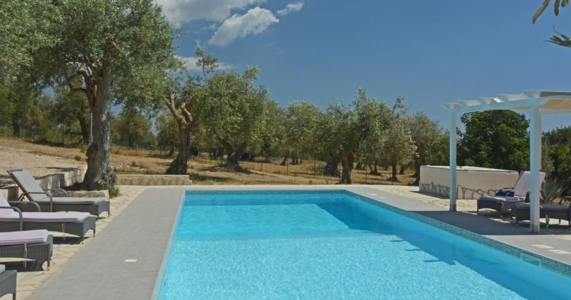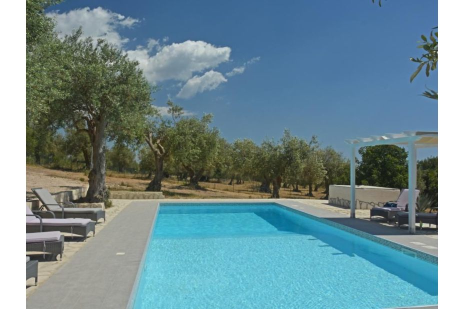 Nur wenige Meter vom Haus entfernt, umgeben von alten Olivenbäumen und einem Sonnendeck steht den Gästen der hauseigene Pool (12 m x 6 m, kein Chlor auf Basis von Salzelektrolyse) mit Nachtbeleuchtung, Liegen, einem schattigen