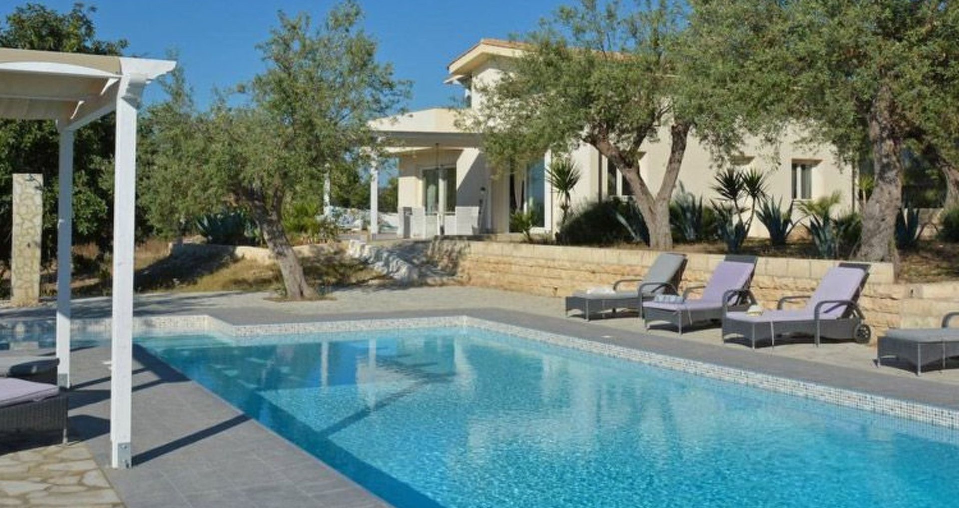 Die VILLA NOTO-SYRAKUS ist eine moderne Ferienvilla auf eine großen und eingezäunten Grundstück, bestückt mit jahrhundertealten Olivenhainen und Maulbeerbäumen.