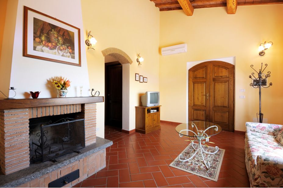 Essplatz mit Tisch und Stühlen, SAT-TV und Klima-Anlage.